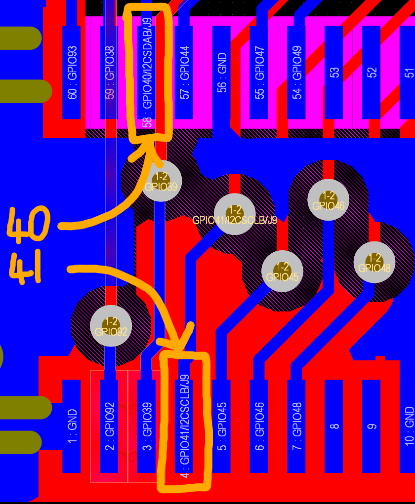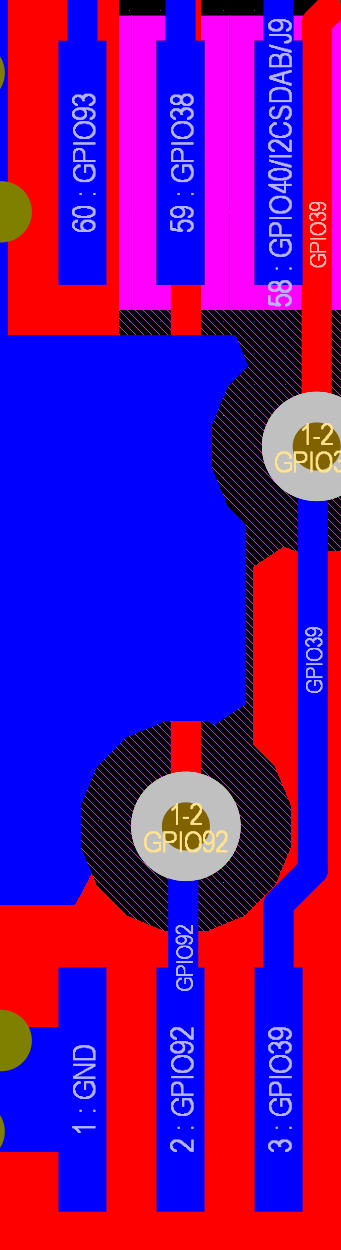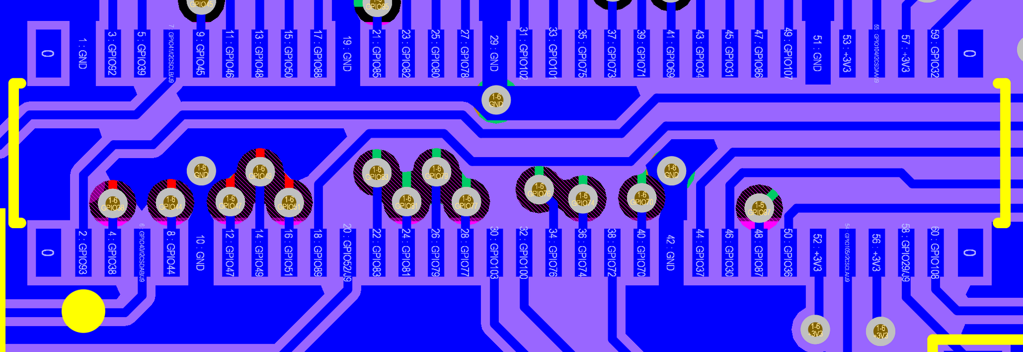The design follows the schematic pin configuration. Hence some connections will be assign to GND or 3.3V resulting it unusable